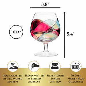 Dishwashers can damage the stunning, hand-painted designs decorating your ‘Sagrada’ Brandy Glass. That’s why we highly recommend hand washing your art pieces to preserve their lustrous finish for years to come.