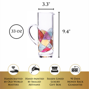 Dishwashers can damage the stunning, hand-painted designs decorating your ‘Sagrada’ Water Pitcher. That’s why we highly recommend hand washing your art pieces to preserve their lustrous finish for years to come.