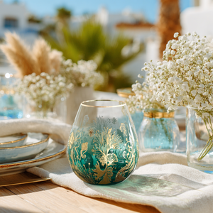 Each goblet is delicately handcrafted by skilled artisans, and designed to echo the rhythm and the beauty of the sea itself.