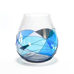 Each glass is carefully handpainted in the swirling shades of sapphire, deep turquoise and cerulean blue…