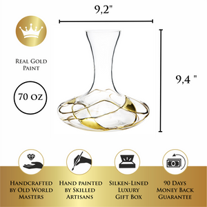 The moment friends and family see your Trinity Imperial Wine Decanter’s lovely curves and real gold designs for the first time, they’ll feel special... like royalty.