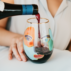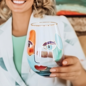 The ‘Artistic Gaze’ Stemless Wine Glass.