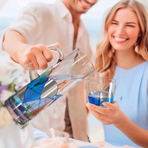 Just watch as the ice cubes sparkle and the sunlight dances through the swirling blues of your ‘Nativity’ Water Pitcher…